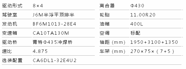 車架采用270×75×(7+5)雙層結(jié)構(gòu),承載能力強(qiáng);車架內(nèi)加強(qiáng)板(俗稱大支架)使車架的抗彎能力、抗扭曲、抗疲勞強(qiáng)度大大加強(qiáng),懸架部分標(biāo)配德國采埃孚(ZF)公司的V型反作用桿,進(jìn)口橡膠接頭,使用壽命比普通反作用桿高6個月。后鋼板彈簧由20mm厚度增加到22mm,承載能力更強(qiáng)。
