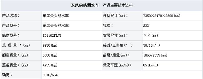 湖北潤力東風(fēng)尖頭灑水車EQ1102FLJ5