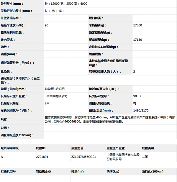 公告型號 ZXF5170TXFXC13/H5
