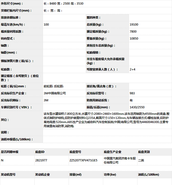 公告型號 XZJ5190GXFSG80/F2