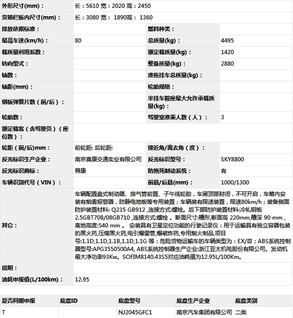 公告型號 NJ2045XQYG