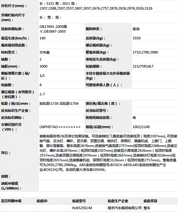 南京汽車暢達(dá)牌NJ5049XJC5E檢測(cè)車