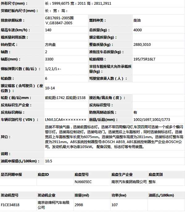 公告型號 NJ5045XQCF2E