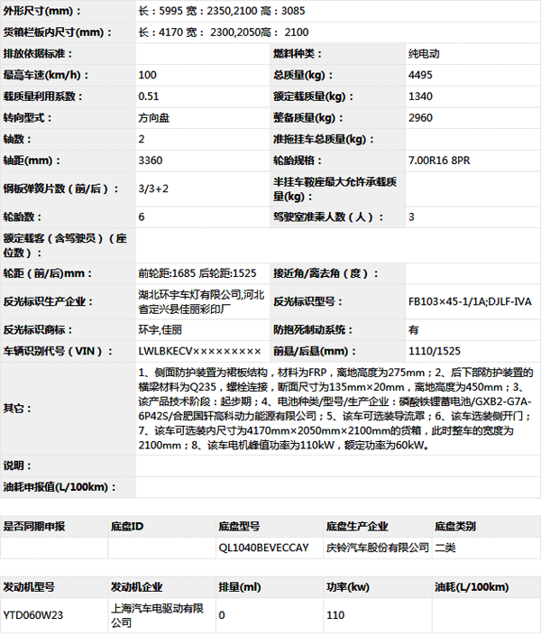 公告型號 QL5040XXYBEVECCA