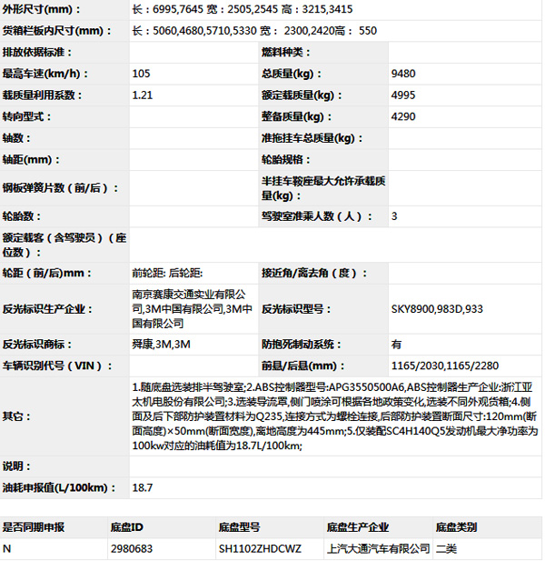 上汽大通躍進牌SH5102CCYZHDCWZ倉柵式運輸車