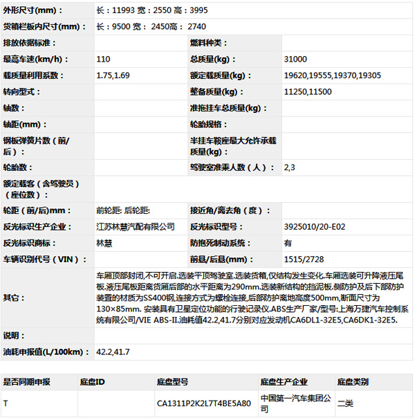 公告型號(hào) CA5311XXYP2K2L7T4E5A80