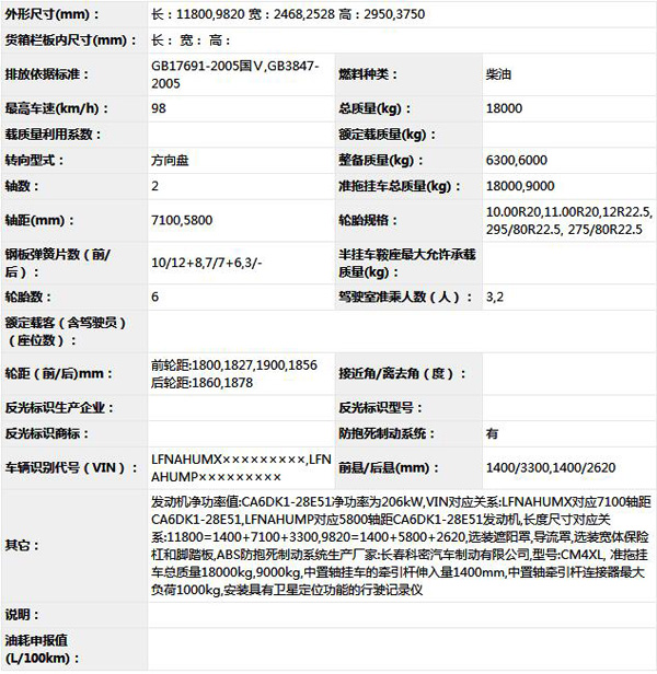 公告型號(hào) CA5180XXYP62K1L7A2E5