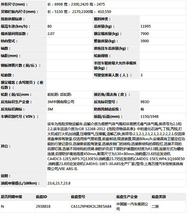 中國一汽解放牌CA5129TQPP40K2L2E5A84氣瓶運輸車