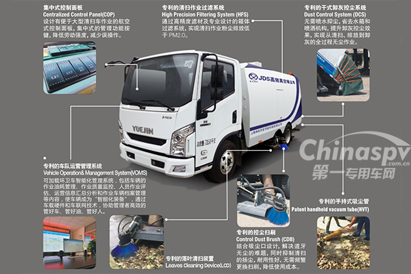 利用負(fù)壓純吸原理實(shí)現(xiàn)單向進(jìn)風(fēng),配裝專利無(wú)塵邊掃,實(shí)現(xiàn)路面縫隙和邊道路牙的快速高效清掃,節(jié)約水資源,避免清掃二次污染。