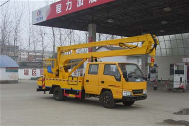 備注 該車前伸為800mm。選裝二節(jié)工作臂時,作業(yè)高度為12米; 選裝三節(jié)工作臂時,作業(yè)高度為14米和16米。防護材料:Q235A碳鋼,連接方式:左右側(cè)面及后下部防護均采用焊接連接,后部防護斷面尺寸(mm):170×50,后部防護離地高度(mm):350。ABS系統(tǒng)型號:APG3550500A,ABS系統(tǒng)生產(chǎn)廠家:浙江亞太機電股份有限公司。該車可選裝帶電控操作箱。專用裝置:吊臂,主要用于高空作業(yè),進行維修、安裝、清洗、攝影、造船、化工、電力、剪枝、更換路燈及其他工程搶修作業(yè)。隨底盤選裝駕駛室。