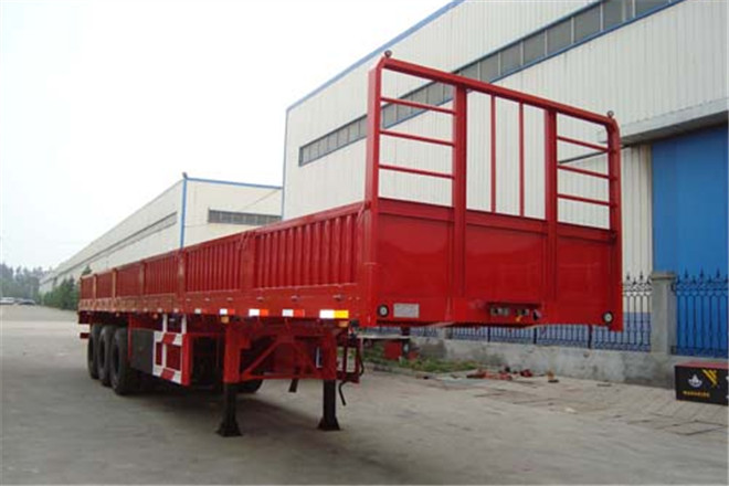 備注 該車選裝側(cè)面樣式,每邊開扇數(shù)可選5開扇,6開扇,3對開扇,立柱可選內(nèi)插和外插及隱形鎖桿樣式,整車欄板選裝豎瓦楞,橫瓦楞,方管平板,方管十字花樣式;選裝前檔板結(jié)構(gòu)和后部結(jié)構(gòu);側(cè),前,后部樣式可任意組合;大梁可選沖孔或不沖孔;因選裝引起的整備質(zhì)量的變化小于3%;ABS系統(tǒng)廠家分別為廣州瑞立科密汽車電子股份有限公司和廣州市西合汽車電子裝備有限公司,型號分別為CM2XL-4S/2K和XH-GQ4S2M-E01;防護欄材料為Q235或鋁合金材質(zhì),連接方式側(cè)面為螺栓連接,后部為焊接,后防護欄主要尺寸:斷面尺寸為140×50mm,離地高度為530mm或500mm。