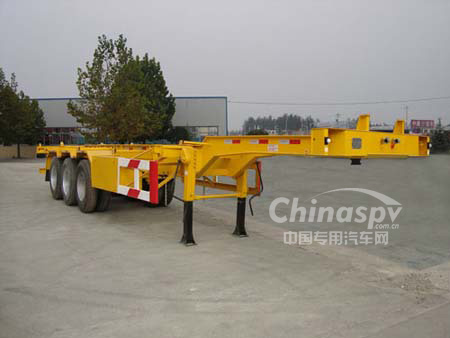 其它:該車僅能裝運(yùn)40尺集裝箱,為小鵝頸式結(jié)構(gòu),牽引銷處的車架總高度為210mm。
