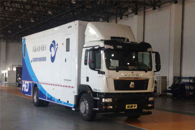 備注 頂部封閉,不可開啟;該車應(yīng)在側(cè)面和后部安裝車身反光標(biāo)識;該車側(cè)防護(hù)和后防護(hù)為裙邊結(jié)構(gòu),側(cè)防護(hù)離地高度為450mm,后防護(hù)離地高度為500mm.ABS系統(tǒng)型號為4460046300,生產(chǎn)企業(yè)為威伯科汽車控制系統(tǒng)(中國)有限公司.專用裝置:音視頻系統(tǒng),傳輸系統(tǒng),機(jī)柜等固定裝置.選裝衛(wèi)星天線,升降照明燈,攝像頭.發(fā)動機(jī)最大凈功率為203kw.