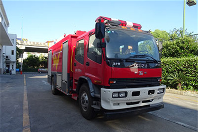備注 罐體總容積為7.529立方米,水罐容積:5.500立方米,水罐尺寸:1610×2350×1500mm,泡沫液罐容積:2.029立方米,泡沫液罐尺寸:620×2350×1450mm。整體式側后防護結構,后防護離地高度:503mm。ABS生產(chǎn)企業(yè)為浙江亞太機電股份有限公司,型號為APG3550500H1。主要專用裝置有消防泵,消防炮。