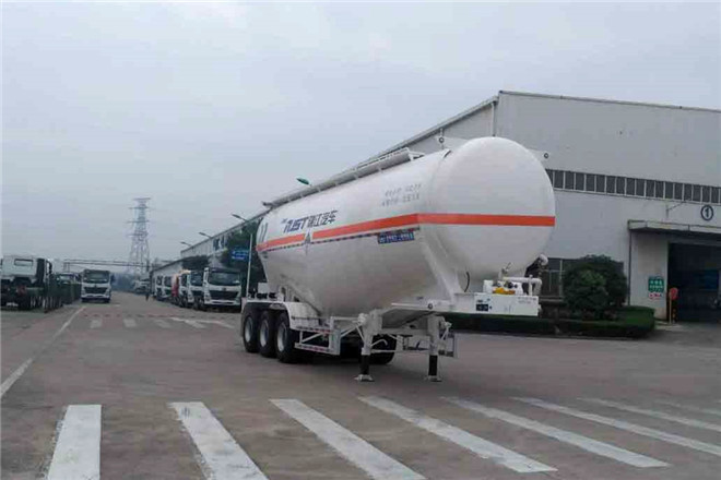 備注 罐體有效容積50立方米.罐體外形尺寸:罐體總長10687mm,前后封頭直徑2058mm,寬2550mm,最大截面高3167mm.運輸介質:垃圾飛灰,密度:628千克/立方米,運輸車輛類型為AT,類項號:9.側,后防護材料均為Q235,連接方式均為為螺栓連接,斷面尺寸槽型150mm×60mm,離地高500mm.頂部封閉不可開槽,后部封閉不可開啟,選裝柴油機組,選裝電動機組,直聯機組,選裝吊架結構,選裝前爬梯及前爬梯樣式,選裝單、雙進氣管道,選裝S型主進氣管道,選裝雙安全閥,選裝接線盒樣式,選裝頂部結構,選裝側爬梯及側爬梯樣式,選裝雙出料管道,選裝下出料結構,選裝工具箱位置,選裝擋泥板,選裝后部結構,選裝后爬梯及后爬梯樣式,選裝燈支架,選裝后防護結構,選裝空氣懸架,選裝后部牌照燈結構,選裝后部防撞預警裝置.ABS生產廠為威伯科汽車控制系統(中國)有限公司,型號為4005000810;克諾爾商用車系統企業(yè)管理(上海)有限公司,型號為K068353XXX,EBS生產廠為克諾爾商用車系統企業(yè)管理(上海)有限公司,型號為K11061XVXX,ABS生產廠為廣州瑞立科密汽車電子股份有限公司,型號為CM2XL-4S/2M,浙江萬安科技股份有限公司,VIE-TABSⅡ.牽引車采用適用于牽引危險品運輸半掛車的牽引車.