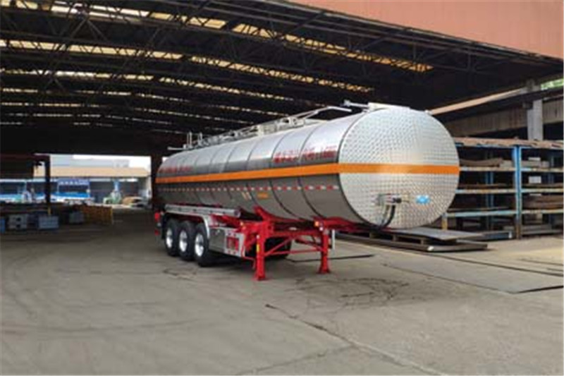 備注 罐體有效容積30.6立方米,罐體總容量32.2立方米.罐體外形尺寸(mm):外罐長10550長軸2527短軸1957,內罐長10350長軸2327短軸1757.危險貨物運輸車輛的類型為:FL型,準運介質的最大密度為1040千克/立方米,選裝集液槽數量及位置、罐頂走道、護欄樣式,選裝側防護工具箱位置、擋泥板樣式.選裝前部帶爬梯及后部爬梯位置,選裝尾部標志板安裝位置,選裝軟管存放箱、側面結構及穿線管,選裝握手盒結構,選裝分段裝配式大梁和T型梁結構、支腿支架樣式、側防護支架樣式,選裝后部上橫梁結構、材料及牌照板位置,選裝蒙皮、深淺封頭及燈支架,選裝正前、正后爬梯及頂部燈支架新結構, 選裝側面尾部操作箱、側面工具箱樣式、滅火器安裝位置及樣式.該車裝空氣懸架.ABS廠家:型號:威伯科(上海)管理有限公司,4005000880或廣州瑞立科密汽車電子股份有限公司,CM2XL-4S/2K(4S/2M)或浙江萬安科技股份有限公司,VIE-TABSⅡ或廣州市西合汽車電子裝備有限公司,XH-GQ4S2M-E01.EBS廠家:型號:克諾爾商用車系統(tǒng)企業(yè)管理(上海)有限公司,K11061XVXX或威伯科(上海)管理有限公司, 4801020640.側防護材料為鋁合金,螺栓連接,后防護材料為鋁合金或Q235,螺栓連接,后防護斷面尺寸80×150mm,后防護材料為Q235,螺栓連接,后防護斷面尺寸65×150mm,離地高500mm.采用適用于牽引危險品運輸半掛車的牽引車.整車長/軸距/半掛車牽引銷到車輛最前端距離/后懸(mm):11050/5400+1310+1310/1500/1530,11050/5200+1310+1310/1500/1730,11150/5200+1310+1310/1500/1830.