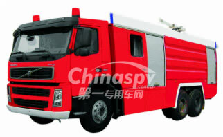 PM120型泡沫消防車系選用瑞典原裝VOLVOFM9底盤,該車動力性能好,最大功率279kw,最高車速95km/h。