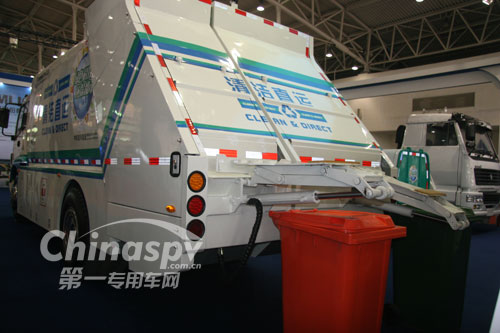 ZLJ5164ZYSBE4型分類壓縮式垃圾車是中聯(lián)重科自主開發(fā)設計的國內(nèi)首臺分類壓縮式垃圾車。該車性能優(yōu)良,操縱控制先進,可回收垃圾和不可回收垃圾所占比例分別為35%和65%,并另設有有害物質(zhì)和特殊物資兩個小型的回收箱,排放達到國IV標準,主要適用于城鎮(zhèn)居民小區(qū)、大型廠礦和機關(guān)院校經(jīng)分類投放的桶裝、袋裝和散裝居民生活垃圾的收運。