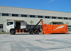 5.車輛采用橋支撐穩(wěn)定裝置,裝卸箱體時油缸將后橋彈簧鋼板撐住,有效防止車輛頭部翹起,在松軟地面和傾斜地面均能作業(yè)。
